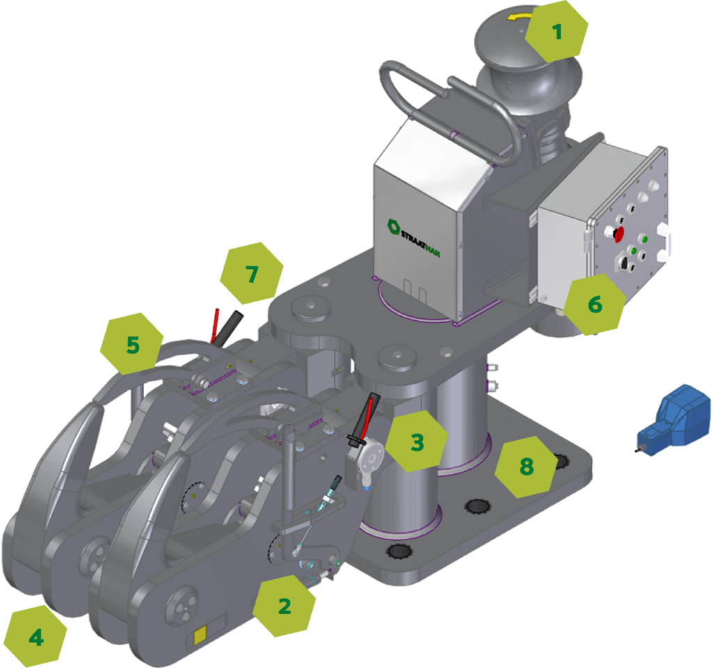Straatman équipe les Crocs d’amarrage à largage rapide de capteurs de charge intégrés afin de mesurer les efforts exercés sur les lignes d’amarrage.