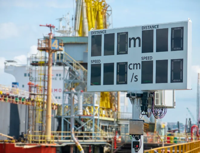 Os operadores utilizam esses dados em tempo real para manter o controle durante todo o processo de atracação e reduzir o risco de danos por contato.